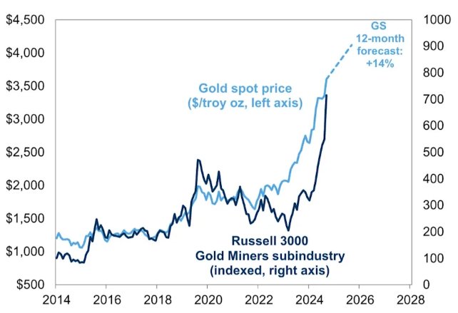 第三,高盛的分析师们还看好黄金矿业股,他们指出,近几个月来黄金的价钱握续高涨,现货黄金本年迄今已高涨了 37%。